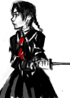 右の絵 あおりで描きたかったんですけど微妙にバランスおかしいです。